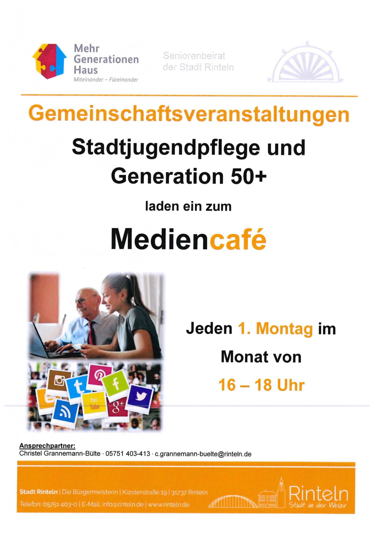 Die Stadtjugendpflege und die „Generation 50+“, begleitet durch die Stiftung für Rinteln, haben mit dem „Mediencafé“ einen Rahmen geschaffen, in dem in entspannter Atmosphäre viele Fragen rund um die Handynutzung, Internetzugänge und vieles mehr geklärt werden können. Fragen werden im Einzelfall geklärt und auf den Umgang mit den Medien wird individuell eingegangen. Den jungen Menschen, die mit dieser Technik groß geworden sind, ist keine Frage zu viel und sie teilen ihr Wissen rund um die Mediennutzung gerne mit der „Generation 50+“.