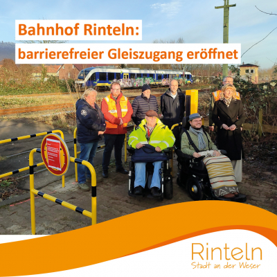 Am 21.01.25 eröffnete die Deutsche Bahn (DB) gemeinsam mit Bürgermeisterin Andrea Lange am Bahnhof Rinteln einen barrierefreien Überweg für mobilitätseingeschränkte Reisende. Wer den barrierefreien Bahnsteigzugang nutzen möchte, kann sich über eine Sprechstelle bei dem örtlichen Fahrdienstleiter melden.