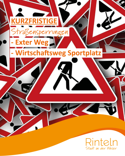 Kurzfristige Straßensperrungen Exter Weg & Wirtschaftsweg am Sportplatz