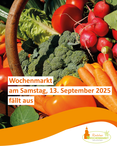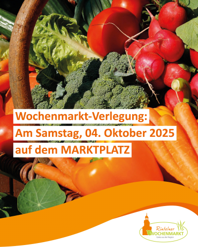 Samstags-Wochenmarkt am 4. Oktober 2025 findet auf dem MARKTPLATZ statt