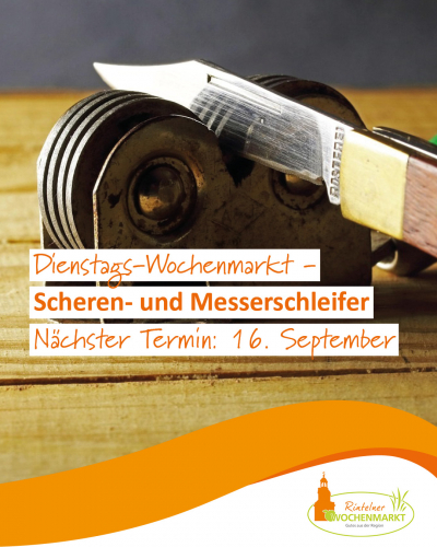 Scheren- und Messerschleifer am 16. September auf dem Dienstags-Wochenmarkt