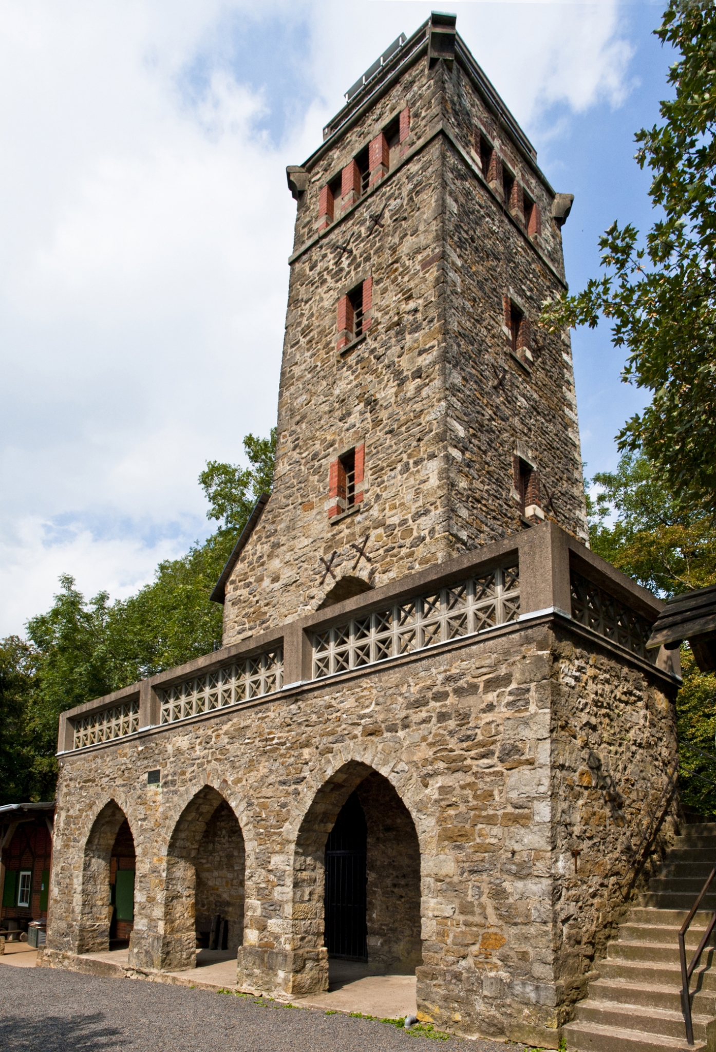 Speisen und Getränke, je nach Jahreszeit im Außenbereich oder im Kaminzimmer, bietet die zum Turm gehörige Gaststätte.
