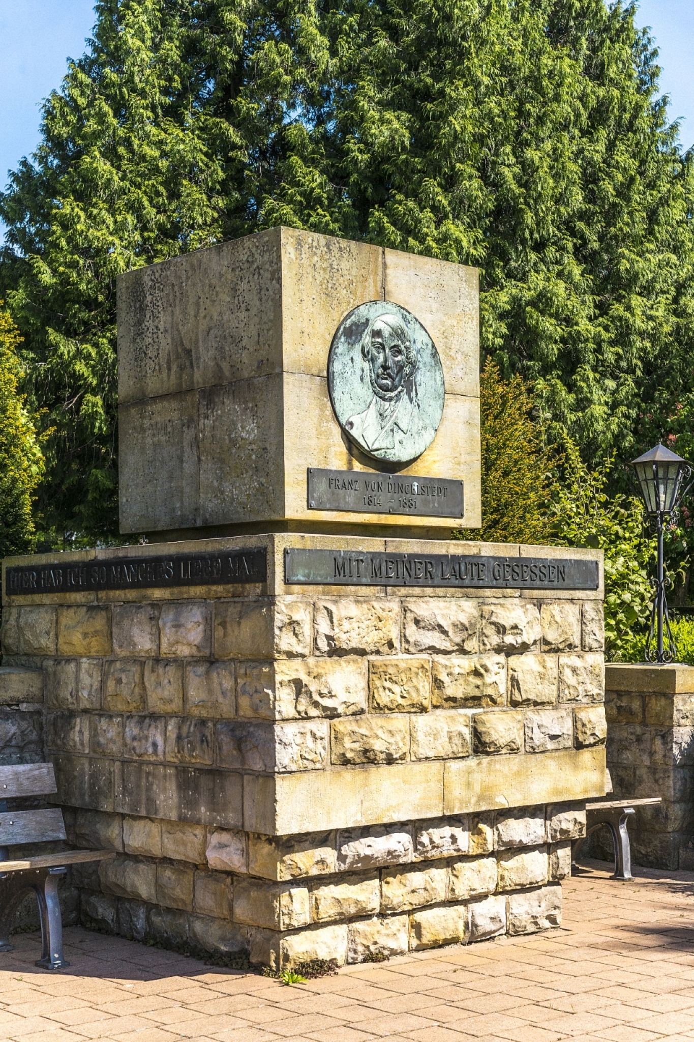 Das Denkmal wurde am 16. Mai 1931 eingeweiht - was damals wie ein vaterländisches Ereignis begangen wurde. Dingelstedt soll das Lied mit einem Schaumburger Diamanten in eine Fensterscheibe des Gasthauses eingeritzt haben. Zusammen mit dem Lied aber verewigte er ein Schnapsglas - wahrscheinlich ein Symbol dafür, daß er mit dem Schnaps in diesem Glas die Trauer über eine unerwiderte Jugendliebe hinuntergespült hatte.