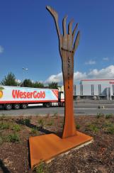 "Handbaum", verschiedene Objekte in unterschiedlichen Materialien und Gestaltung, errichtet im Jahr 2007 Standort: Kunstmeile Industriegebiet Künstler: Manfred Tiefensee, Rinteln