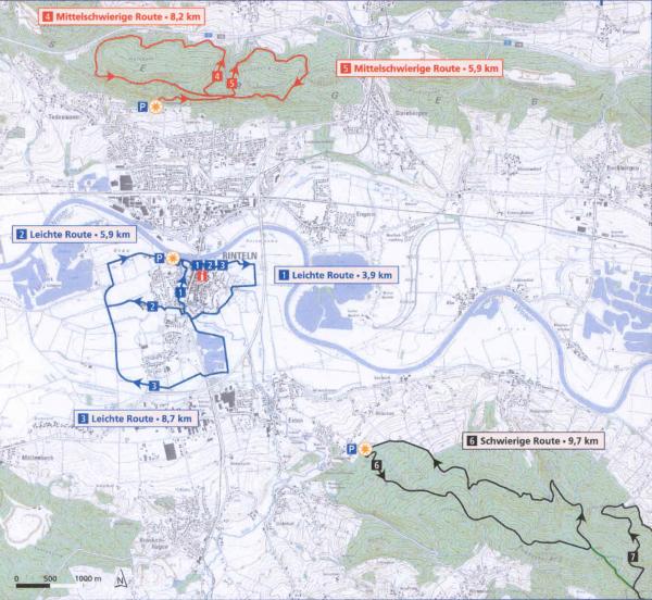 | 4 | Mittelschwierige Route 4 | 8.20 km | mittelschwierig / rot | 126 m | 95 m |