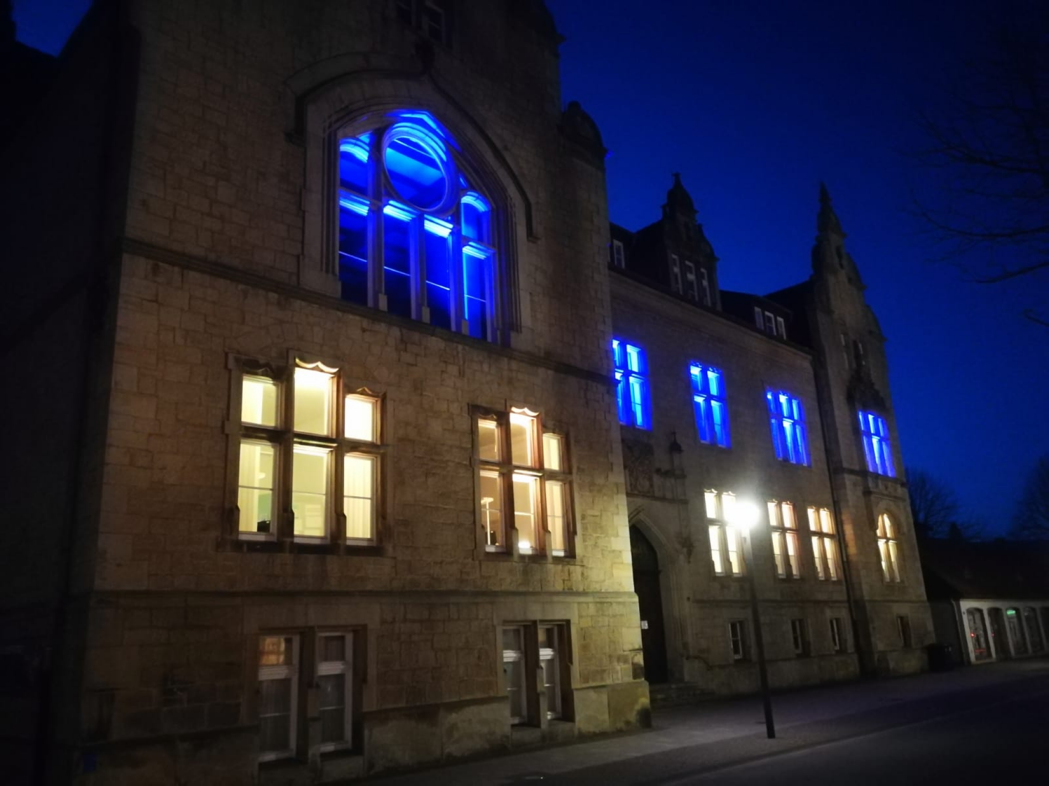 Zeichen der Solidarität: Gymnasium Ernestinum Rinteln wird nachts in Ukraine-Farben beleuchtet - Rinteln aktuell vom 02. März 2022