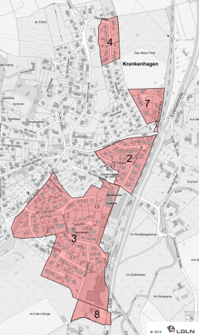 In der Grafik sind die Geltungsbereiche der Bebauungspläne vom Ortsteil Krankenhagen dargestellt. Klicken Sie auf auf die Grafik um die Karte zu vergrößern bzw. um heranzuzoomen.