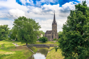 Entlang des ebenfalls 1847 angelegten „Alten Hafen“ gelangen wir zur katholischen Kirche. Das in den Jahren 1884-1888 auf der ehemaligen Bastion „Hessen“ im neugotischen Stil errichtete Gotteshaus wurde St. Sturmius geweiht, einem Schüler des Hl. Bonifatius.