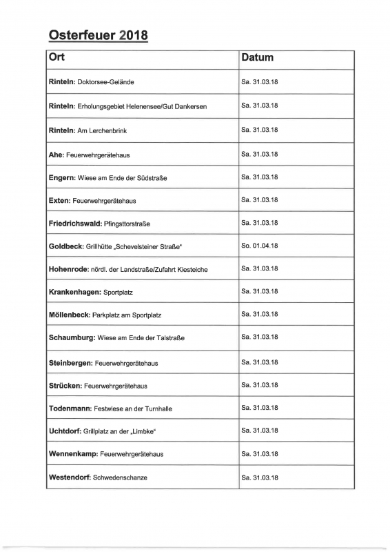 Das Brennmaterial darf daher erst an dem Tag, an dem das Feuer angezündet werden soll, auf der Feuerstelle aufgeschichtet werden. Wurde es bereits vorher angesammelt, so ist es an diesem Tag noch einmal komplett umzuschichten. Das Ordnungsamt der Stadt Rinteln wird die Einhaltung dieser Auflage besonders kontrollieren.