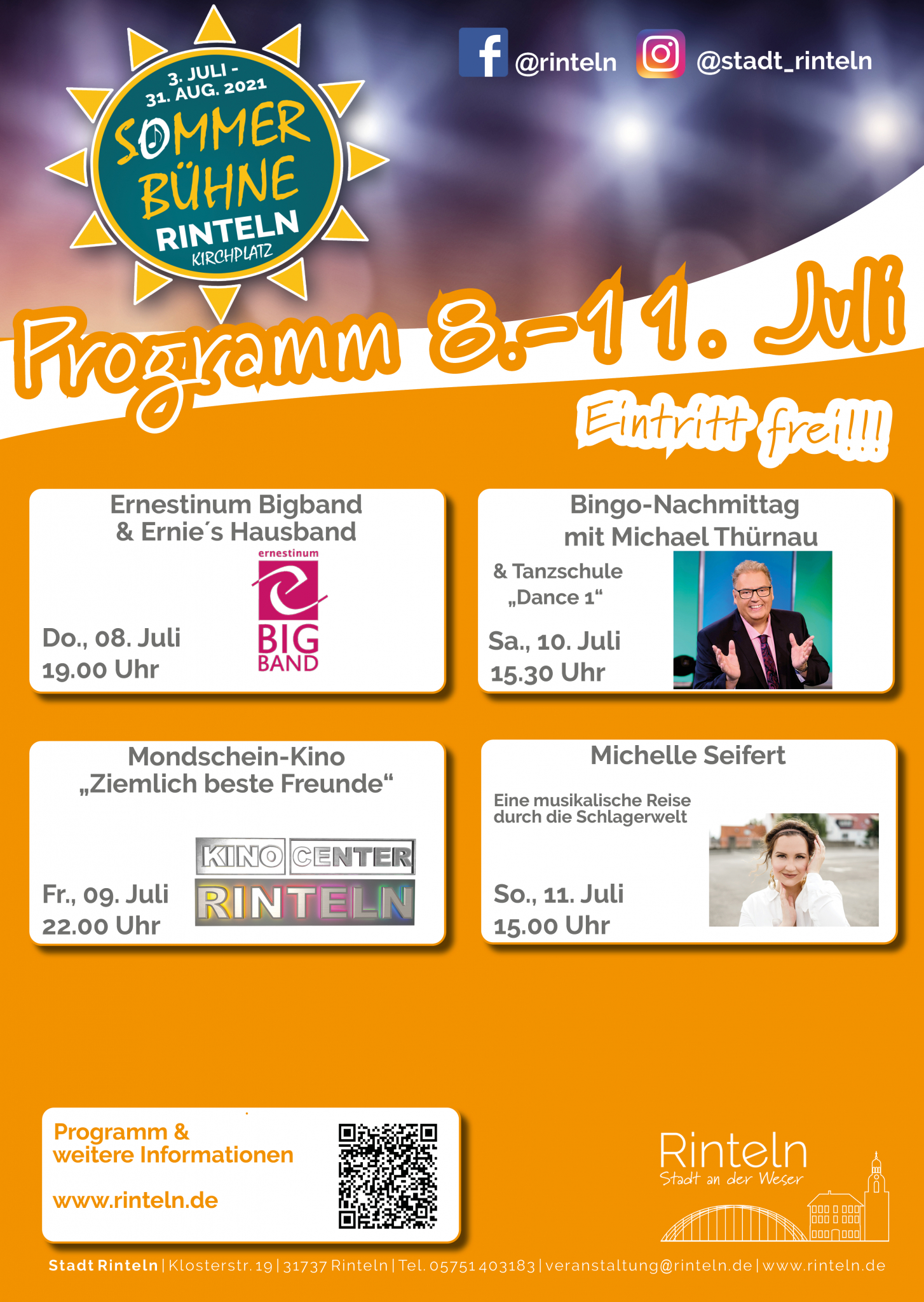 Das vollständige Programm der Rintelner Sommerbühne bis zum 31. August 2021 sowie weitere Informationen erhalten Sie auf hier.