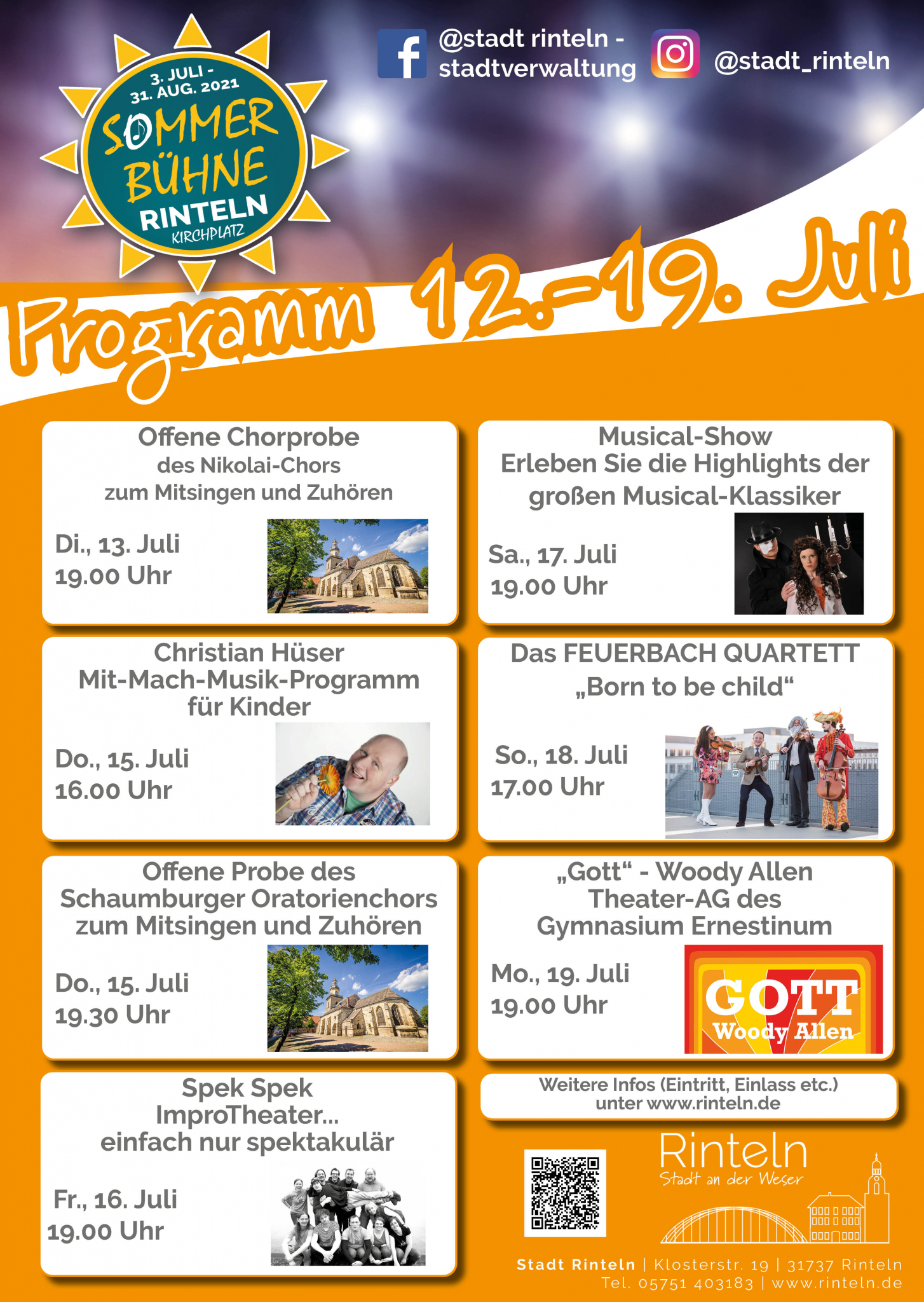 Die Rintelner Sommer-Bühne 2021 - Programm vom 12. bis 19. Juli 2021
