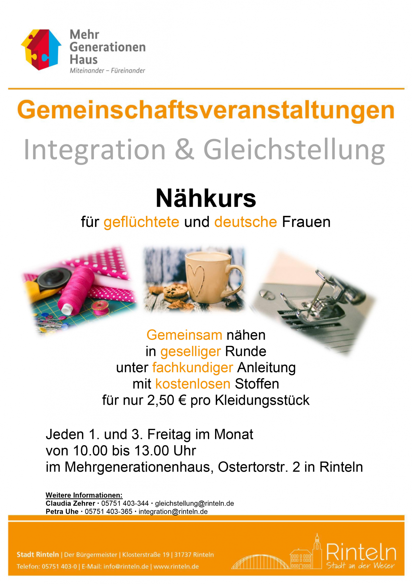 Der interkulturelle Nähkurs startet wieder! Das Projekt findet in Kooperation mit der Gleichstellungsbeauftragten der Stadt Rinteln statt.