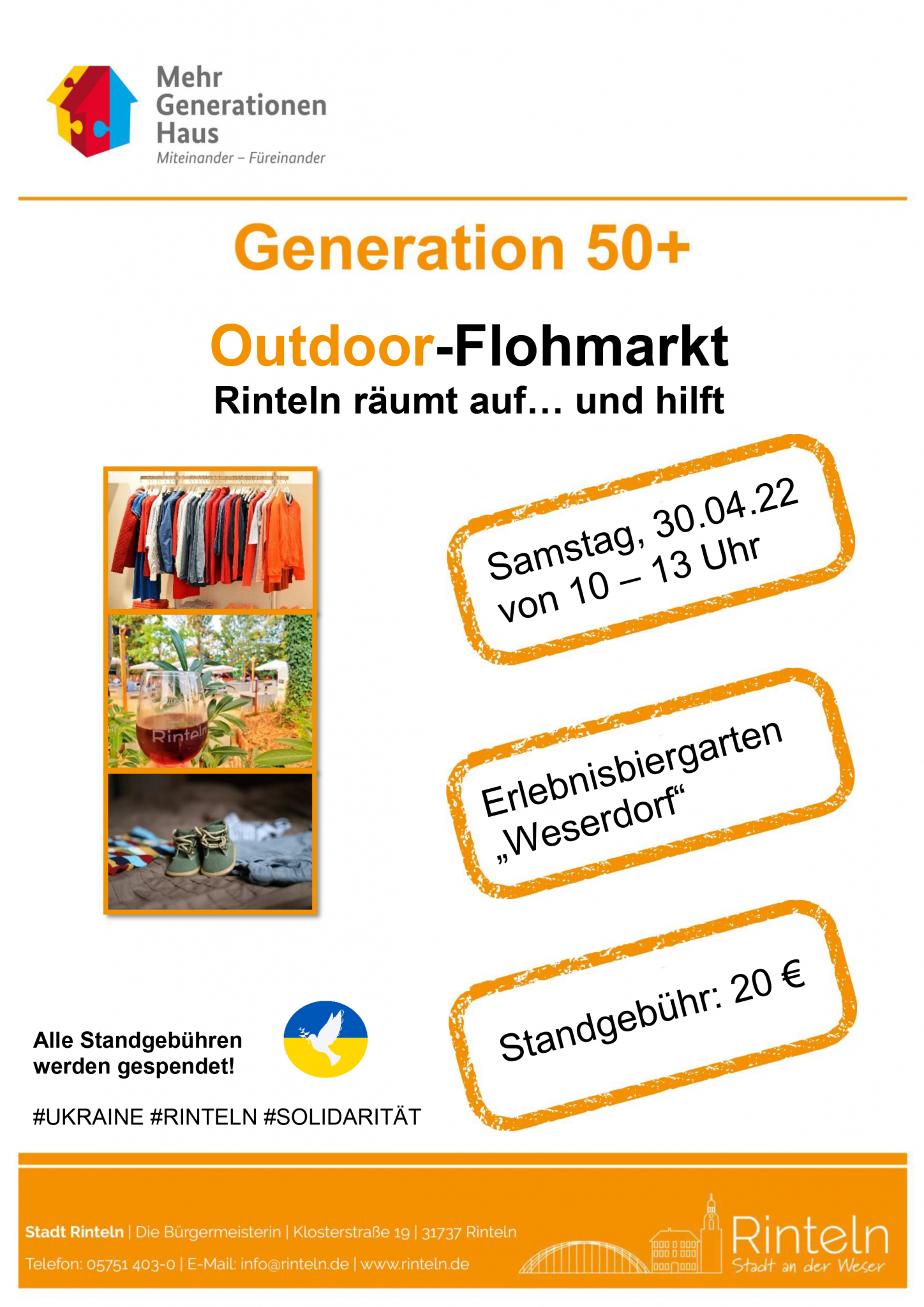 Unter dem Motto „Rinteln räumt auf und hilft!“ organisiert das Mehrgenerationenhaus einen großen Outdoor-Flohmarkt. Er findet am Samstag, den 30.04.2022 in der Zeit von 10 – 13 Uhr im Erlebnisbiergarten „Weserdorf“ am Weseranger statt. Für das leibliche Wohl wird durch Inhaber Marlon Klaasen gesorgt.