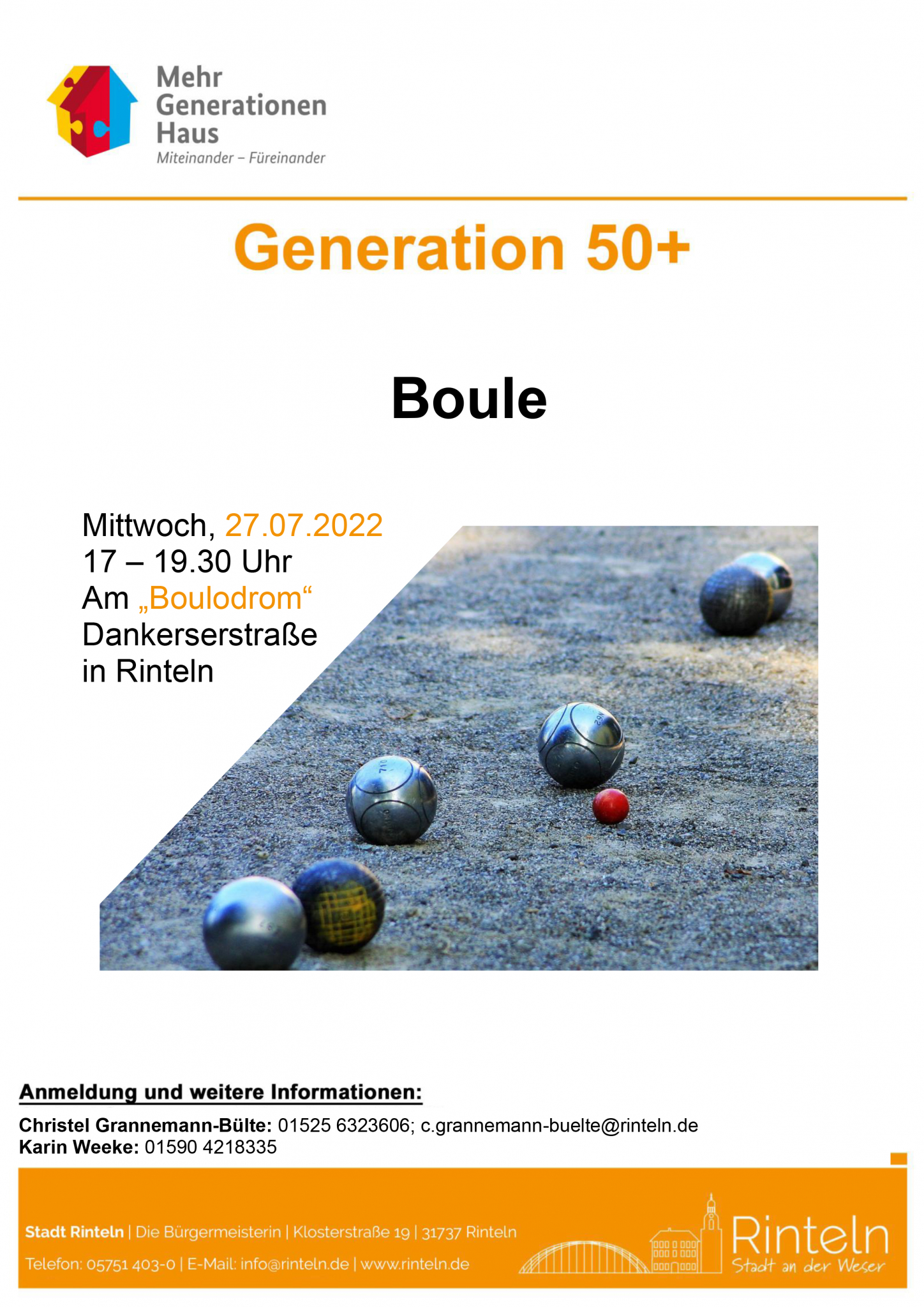 Eine Runde Boule - Die „Generation 50+“ lädt Sie ein zum Boulenachmittag