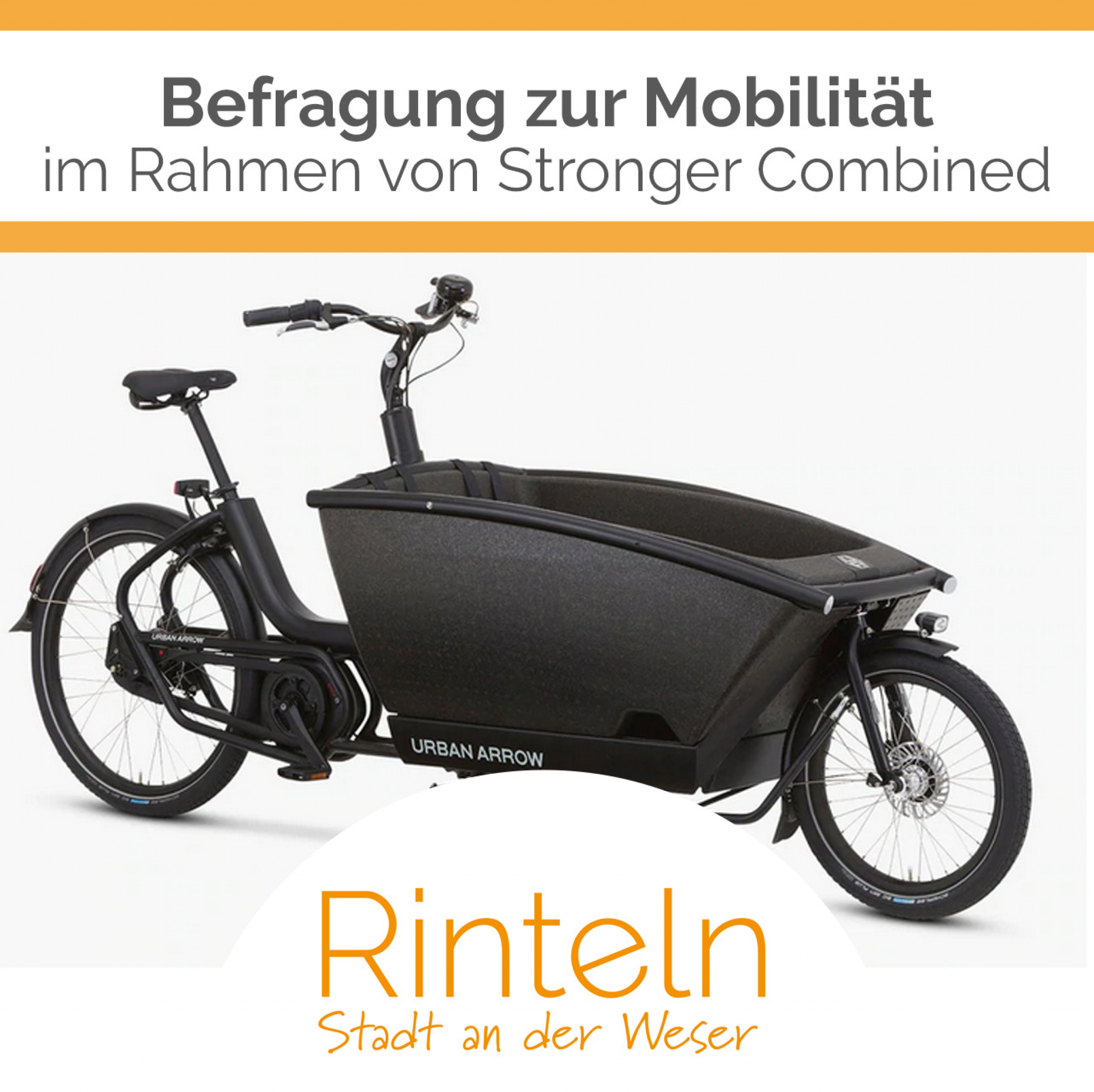 Zur Teilnahme sind alle Bürgerinnen und Bürger der Stadt Rinteln aufgerufen. Die Fragen beziehen sich allgemein auf die Mobilität in der Stadt Rinteln und die genutzten Transportmittel, wozu bspw. das Auto, ein Fahrrad oder ein Lastenrad gehören können. Eine vorherige Nutzung eines der E-Lastenräder ist also keine Voraussetzung zur Teilnahme an der Befragung. Die Ergebnisse fließen in eine Gesamtauswertung zur Mobilität in der Stadt Rinteln ein, um diese kontinuierlich weiterzuentwickeln. Eine Verlinkung zur Befragung finden Sie auf der Homepage der Stadt Rinteln unter https://www.rinteln.de/politik-und-verwaltung/demografie/aktionen-und-projekte/stronger-combined/ .