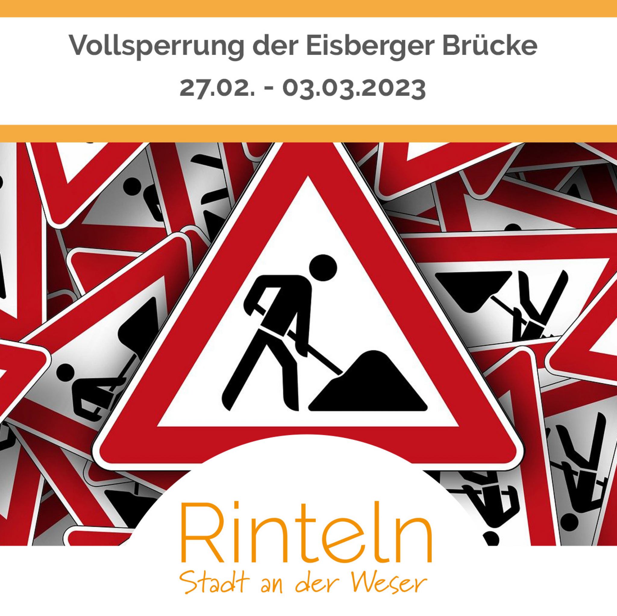 Aufgrund einer Brückenprüfung wird die Weserbrücke in Eisbergen vom 27.02.2023 bis zum 03.03.2023 voll gesperrt.