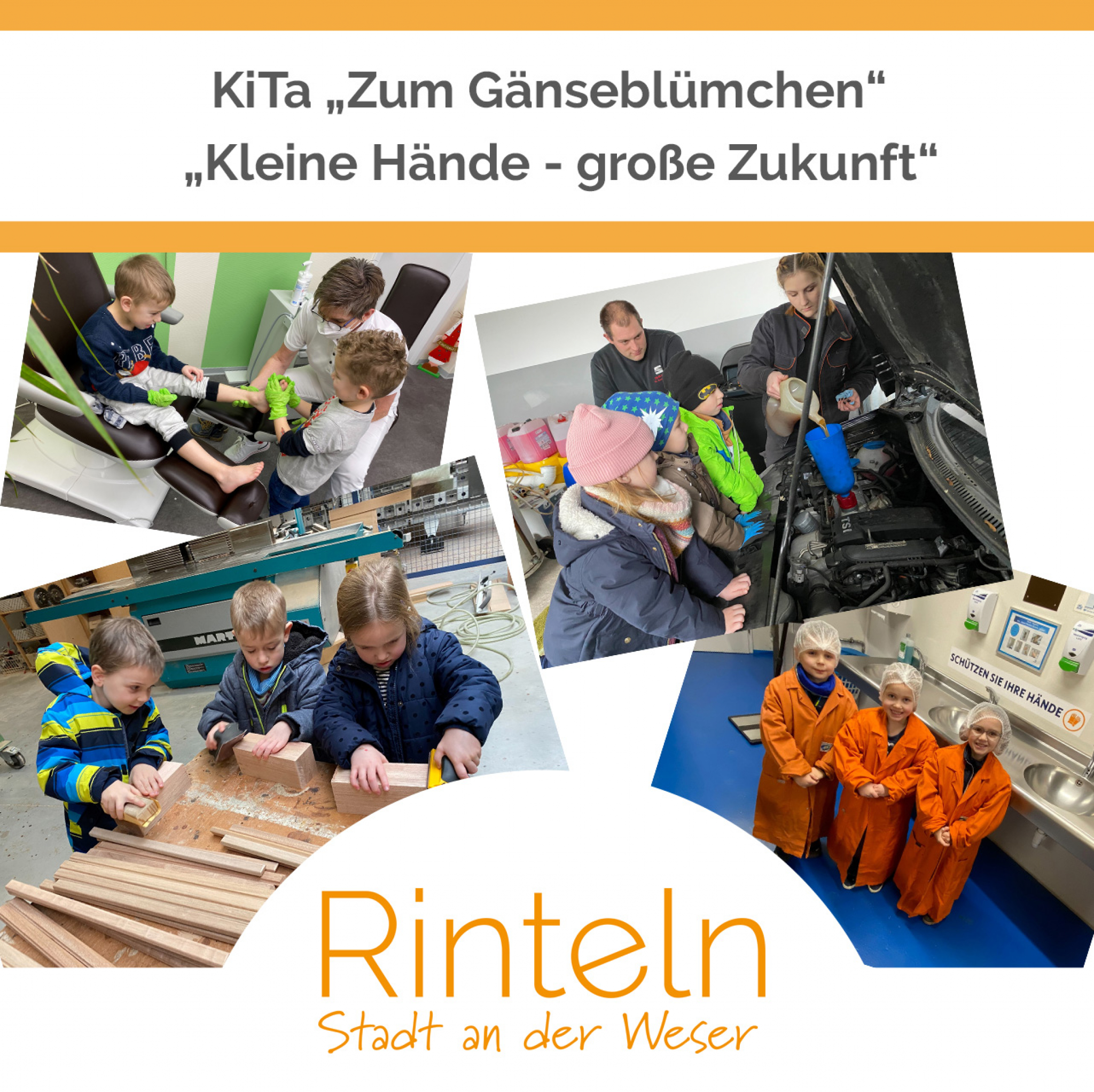 Ein großer Dank geht an die Firmen, die sie besuchen durften: Autohaus Buddensiek, Praxis für Podologie Heike Bunte, Tischlerei Albrecht, Malerbetrieb Ingo Gödecke, Bäckerei Scholz, Kosmetikstudio Silke Ruppelt, Christines Frisurenstudio, S&H Bedachungen, Wegener Schuhe, Flexiprime Rinteln, Adalberts Rinteln, Fleischerei Rauch, Heizungsbaumeister Tobias Zakrzewski