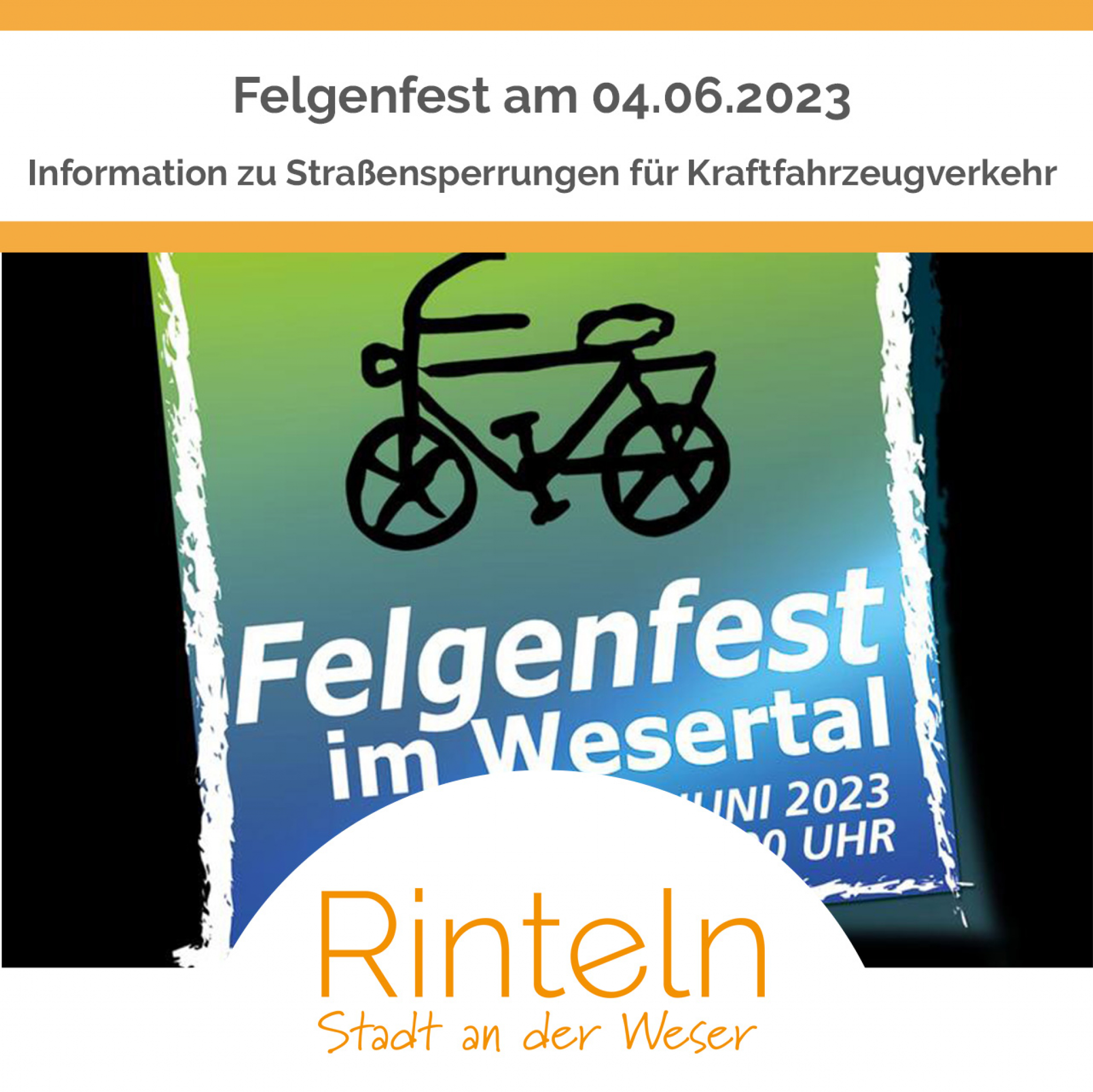 Felgenfest im Wesertal am 04.06.2023 - Vorankündigung Straßensperrungen