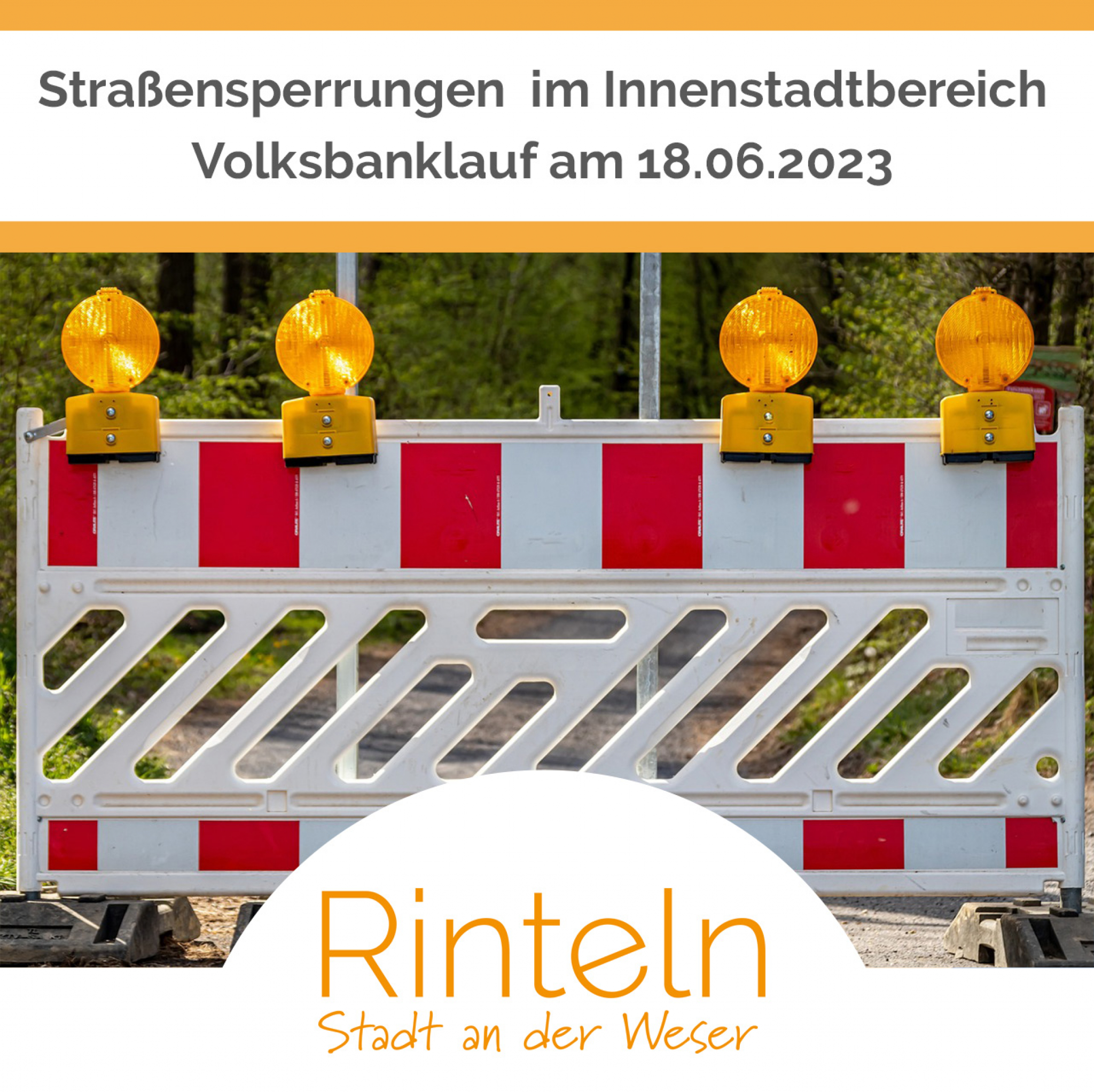 Anlässlich des diesjährigen Volksbanklaufes der VT Rinteln werden Teile des Innenstadtbereichs in Rinteln am Sonntag, 18.06.2023, wieder für den Kraftfahrzeugverkehr gesperrt.