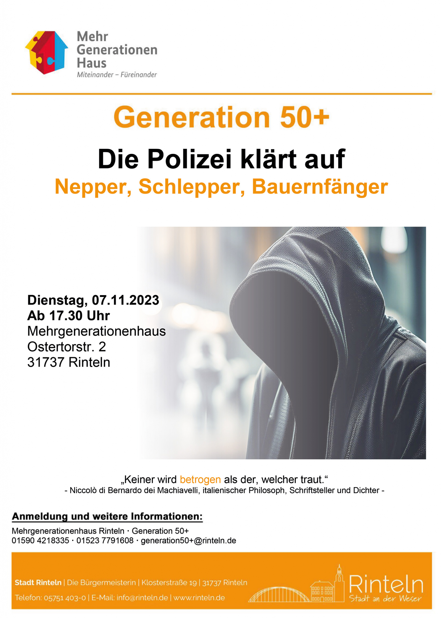 Am Dienstag, den 07.11.2023 klärt Herr Elbing von der Polizei Rinteln über aktuelle Betrüger-Tricks auf und gibt wertvolle Hinweise, wie man es Betrügern schwer machen kann.