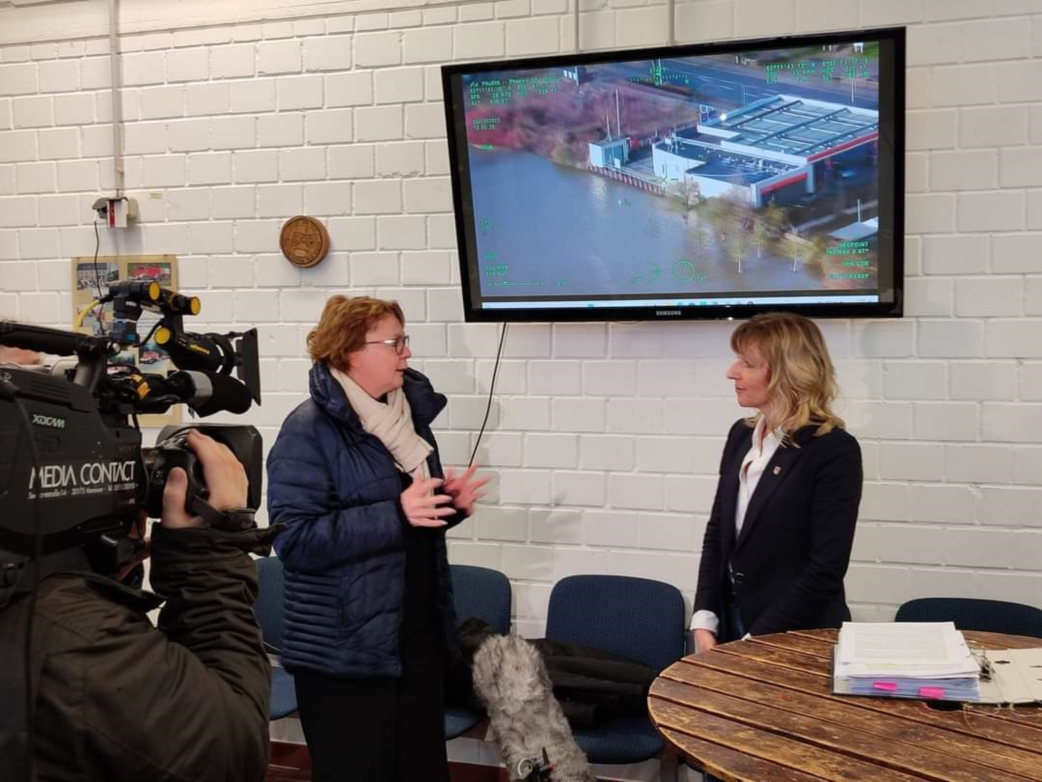 In Anwesenheit von zahlreichen Medienvertretern bedankte sich die Bürgermeisterin bei den Einsatzkräften und dem Land Niedersachsen für die bisherige Unterstützung und warb für Förderungen für den Hochwasserschutz.