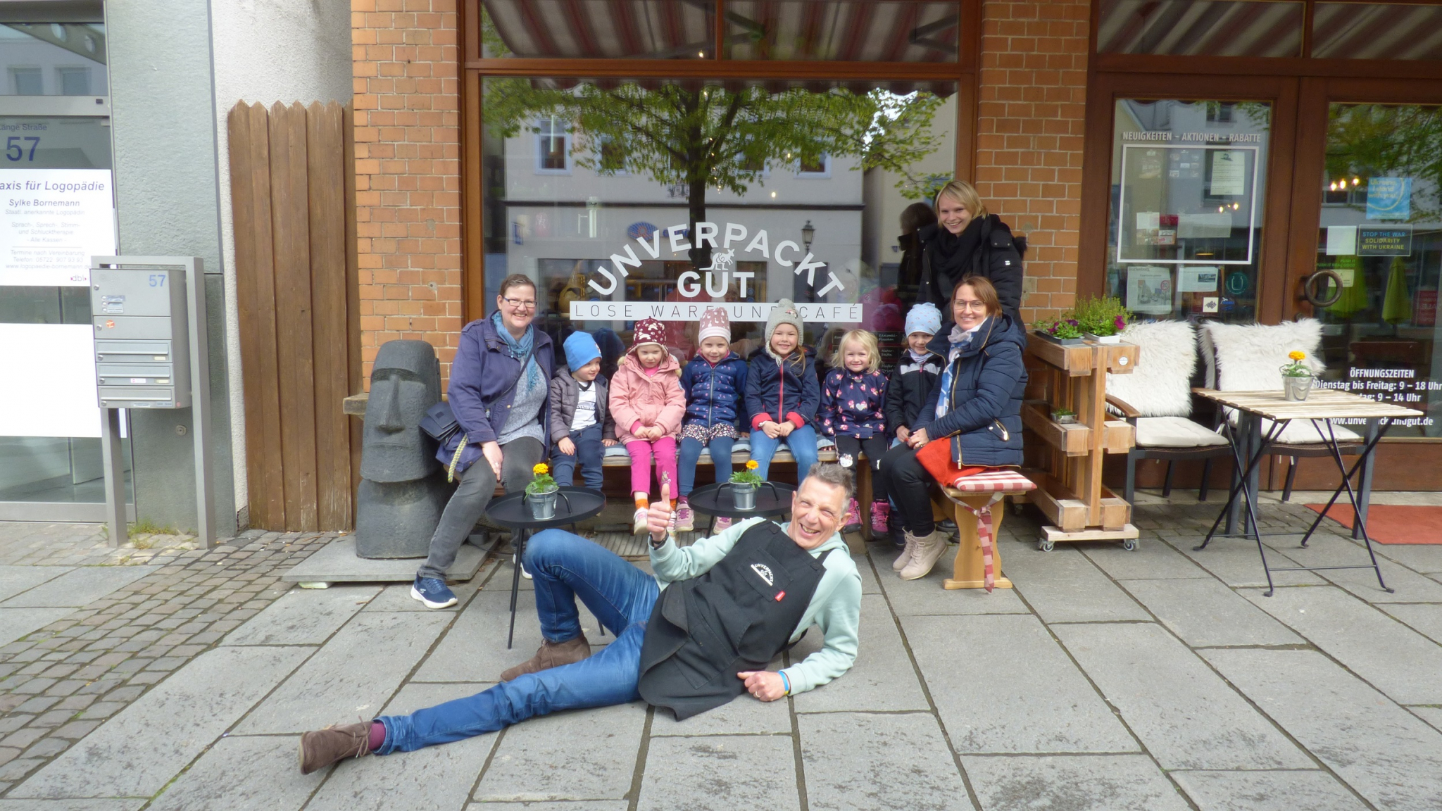 Zuletzt besuchten die Kinder den UNVERPACKT & GUT Laden in Bückeburg. Die Kinder waren sehr beeindruckt. Gleichzeitig erkannten sie das feste Duschgel, Shampoo und die Zahnputztabletten wieder. Herr Rieger und sein Team nahmen sich sehr viel Zeit für die Kinder der Kita. Er erklärte, wie mit leeren Gläsern eingekauft wird. Interessant war auch die Abfüllstation für Flüssigseife und Waschmittel. Hier konnte man von zu Hause Waschbehälter mitnehmen und sie wieder vor Ort befüllen. Jeder durfte mal pumpen. Zum Schluss gab es noch einen Kinderkakao. Die Kita-Kinder bedanken sich für den schönen Vormittag!