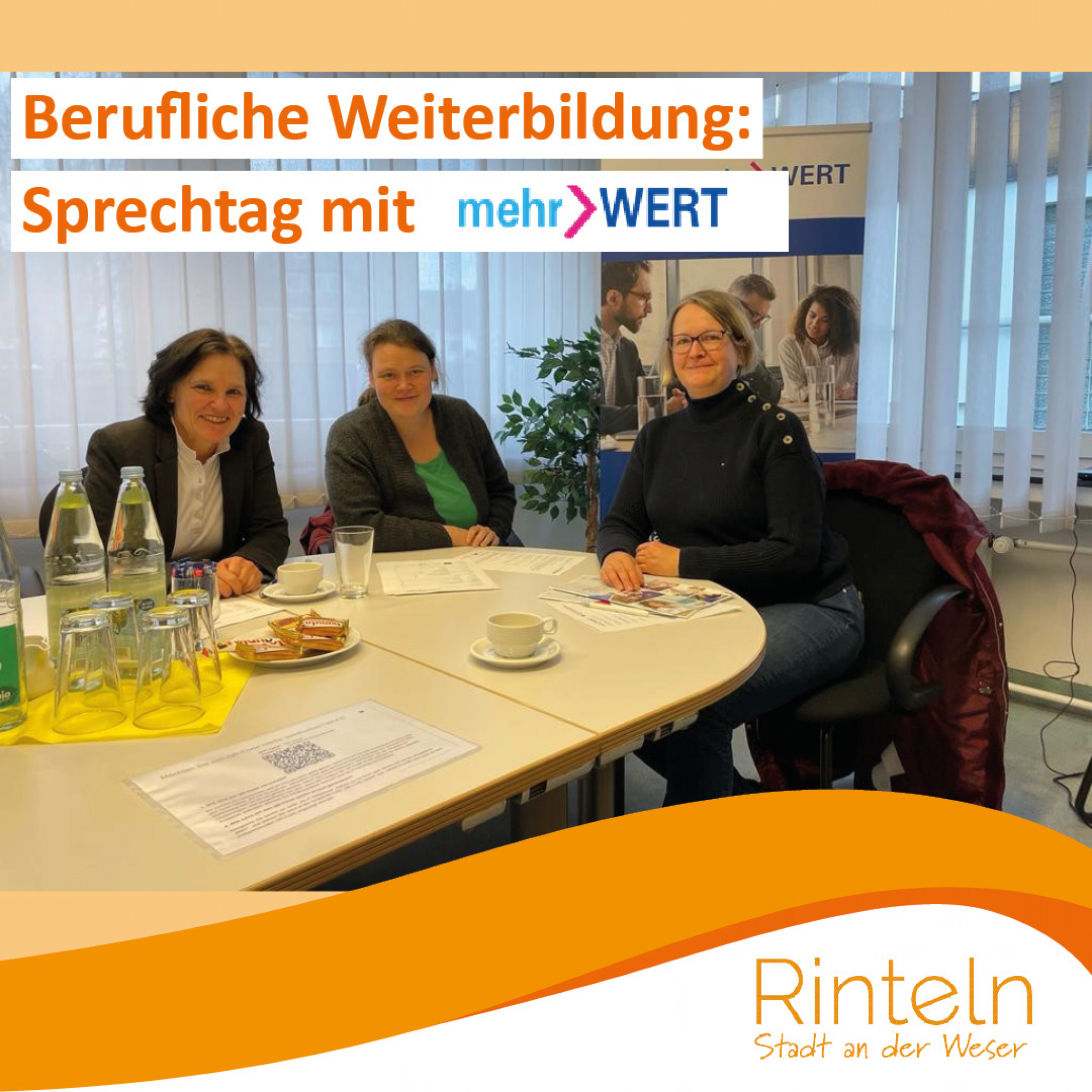 Am 06.08.2024 sind die mehrWERT-Beraterinnen im Rintelner Rathaus, Klosterstr. 20, großer Sitzungssaal, 5.OG Raum 535 (Fahrstuhl vorhanden) und informieren auf dem Sprechtag über das kostenfreie Angebot. Interessierte können das Beratungsteam mehrWERT-Süd kennenlernen oder auch gleich allein oder im Team an einer Erstberatung teilnehmen. „Sie wollen sich weiterentwickeln? Welches Know-How benötigen Sie? Wieviel Zeit können Sie investieren?“ Die Beraterinnen helfen bei der Suche nach der passgenauen Weiterbildung. Eine Anmeldung für den Sprechtag ist auf mehrWERT | Weiterbildungsverbund im ländlichen Raum (mehrwert-weiterbildung.de) erforderlich. Bei Interesse können weitere Beratungen im Betrieb oder im mehrWERT-Büro bei zedita erfolgen.