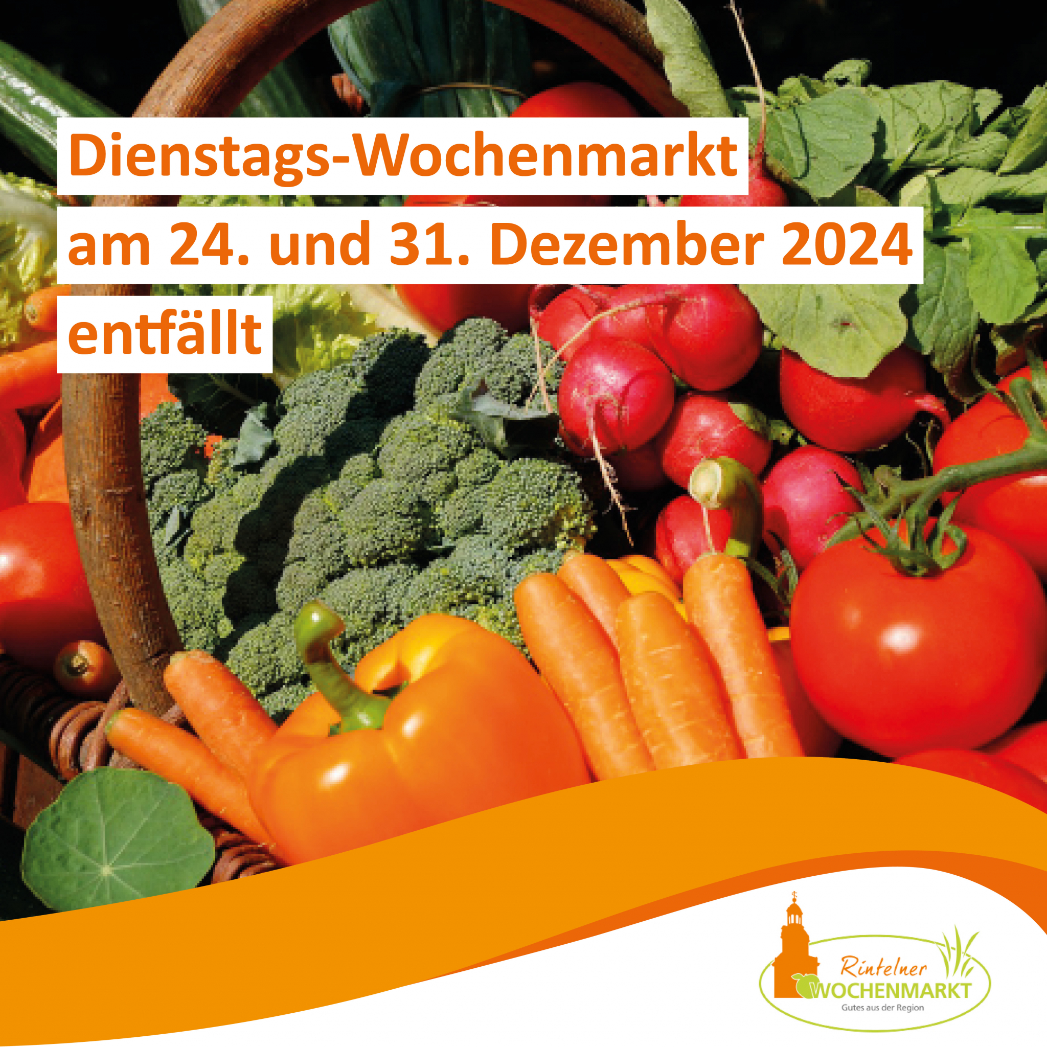 Aufgrund der bevorstehenden Feiertage fällt der Dienstags-Wochenmarkt am 24. und 31. Dezember 2024 aus. Wir bitten um Beachtung!