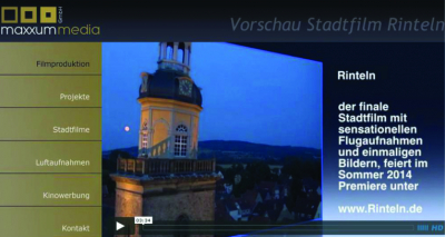 In Kooperation mit der Filmproduktionsfirma maxxummedia GmbH lässt die Stadt Rinteln einen Stadtfilm für die Homepage www.rinteln.de produzieren. Der Film soll die attraktiven Seiten Rintelns mit den Sehenswürdigkeiten und Freizeitangeboten hervorheben und einen ersten Eindruck über die hervorragende Lebensqualität unserer Stadt vermitteln.