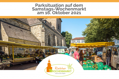 Aufgrund einer kirchlichen Veranstaltung kann der Kirchplatz Süd am kommenden Samstag, 16. Oktober 2021 nicht als Parkplatz für den Wochenmarkt genutzt werden.