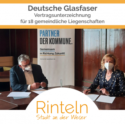 Bürgermeisterin Andrea Lange hat einen Vertrag für 18 gemeindliche Liegenschaften, die in den geplanten Ausbaugebieten liegen, für einen echten, kupferfreien Glasfaseranschluss unterzeichnet. Damit sollen in Zukunft einige Dorfgemeinschaftshäuser, Feuerwehren, Grundschulen und Kindertagesstätten in der Stadt Rinteln an die Datenautobahn angeschlossen werden.
