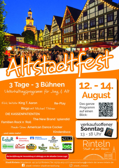 Nach zwei Jahren Pause feiert die Stadt Rinteln vom 12. bis 14. August 2022 wieder das beliebte Altstadtfest. Im Herzen der historischen Altstadt geht es an diesem Wochenende endlich wieder hoch her. Ein Stadtfest in dieser Art ist selten geworden.