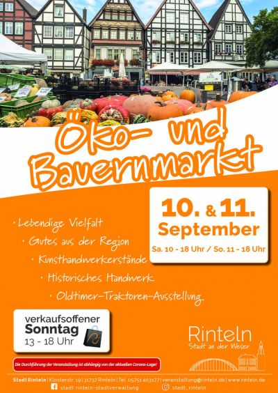 Am 10. und 11. September ist eine bunt gemischte Allianz von landwirtschaftlichen Betrieben, Verbänden und Organisationen des ökologischen Landbaus, sowie aus Verarbeitung, Planung und Handel auf dem Rintelner Markt- und Kirchplatz vertreten und präsentiert dort ein breit gefächertes Programm.