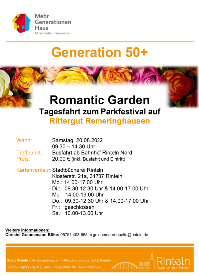 Ein Tag im „Romantic Garden“ Die „Generation 50+“ lädt ein zum Parkfestival auf Rittergut Remeringhausen