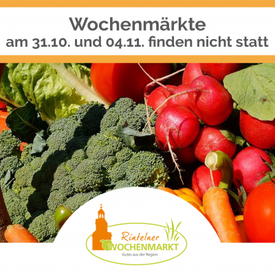 Aufgrund des gesetzlichen Feiertages zum „Reformationstag“ und der Durchführung der „Rintelner Herbstmesse“ am kommenden Wochenende, finden die Wochenmärkte am 31. Oktober und am 04. November nicht statt.