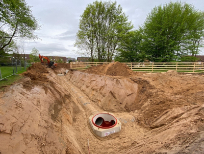 Bau des Regenrückhaltebeckens verläuft planmäßig