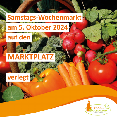 Samstags-Wochenmarkt am 5. Oktober 2024 findet auf dem MARKTPLATZ statt