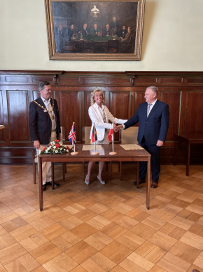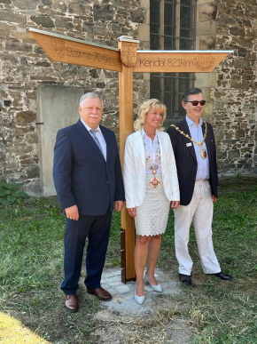 2022: Slawnos stellv. Bürgermeister Mieczyslaw Grabowski; Bürgermeisterin Andrea Lange; Kendals Bürgermeister Douglas Rathbone