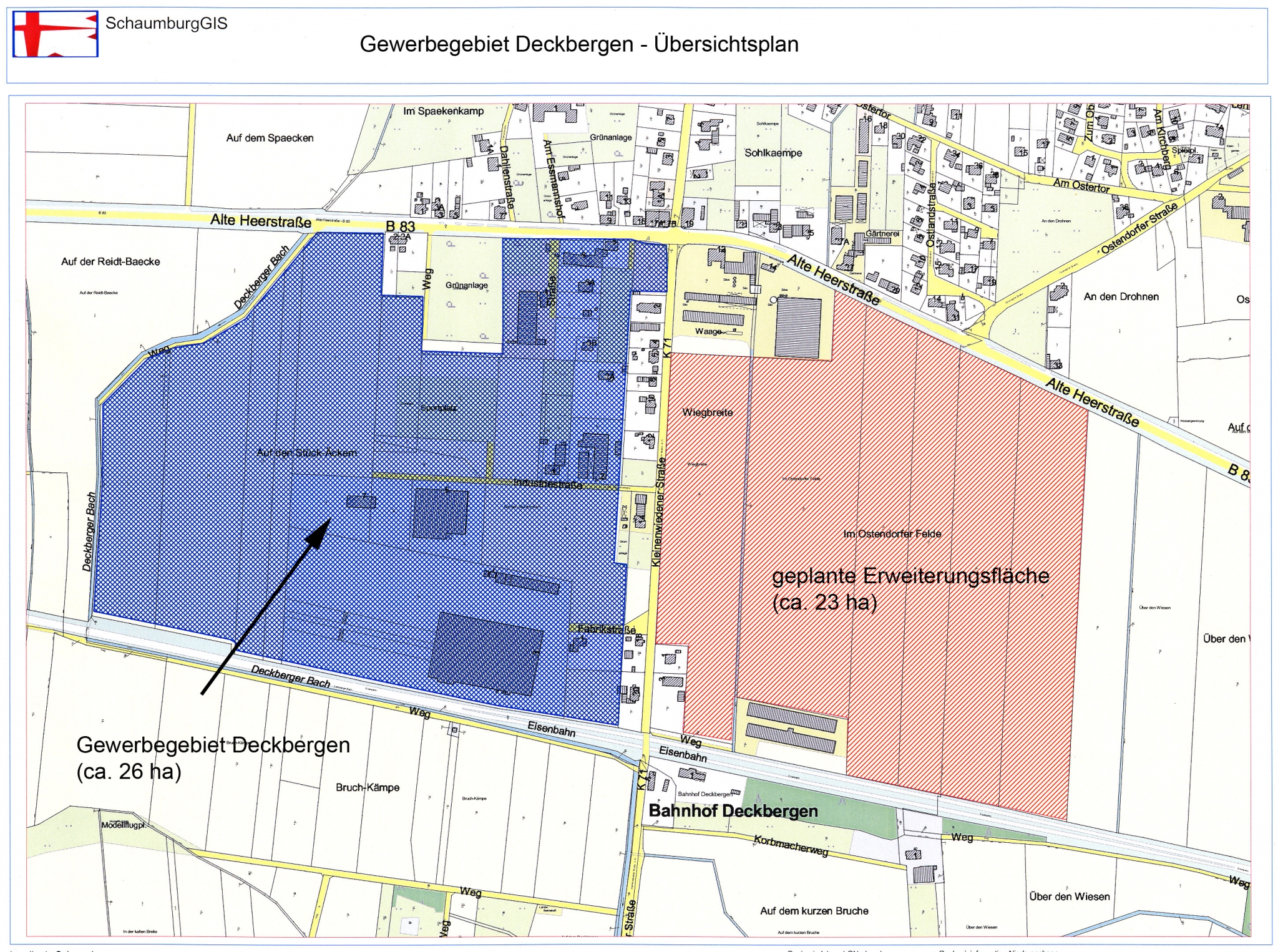 Das Gewerbegebiet Deckbergen liegt verkehrsgünstig unmittelbar an der Bundesstraße 83. Die Autobahn A 2, Auffahrt Bad Eilsen, ist in wenigen Minuten erreichbar.