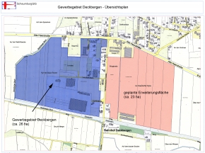 In dem als Gewerbegebiet (GE) überplanten Gelände stehen noch Grundstücksflächen in unterschiedlicher Größe zur Verfügung.