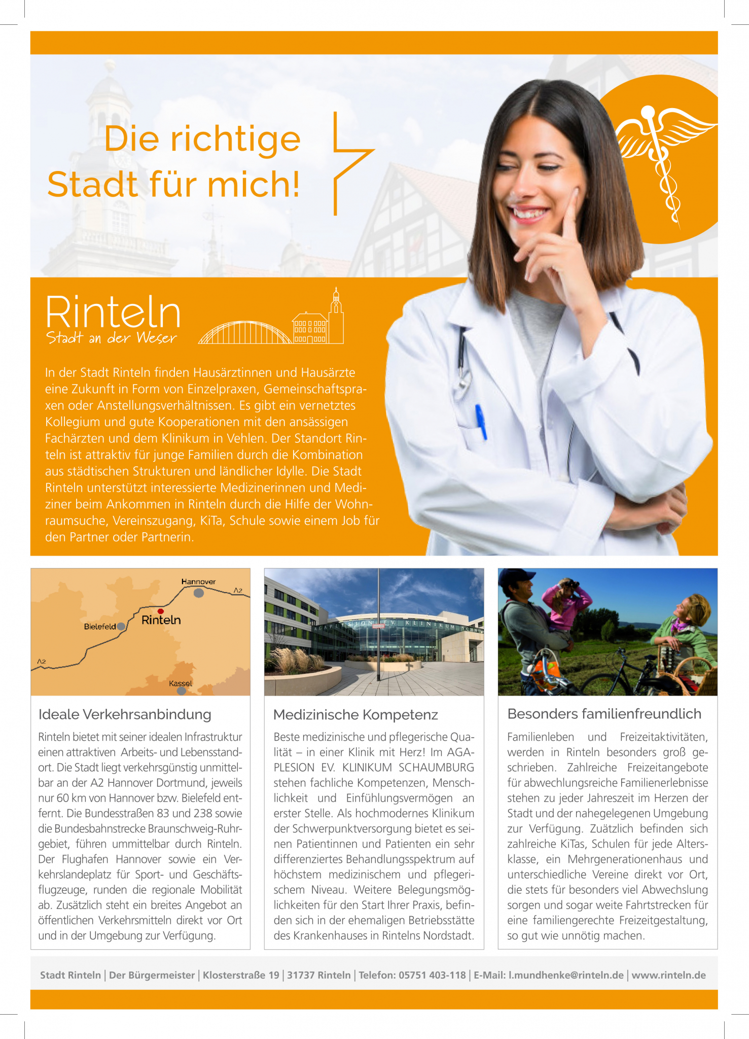Aufgrund der Altersstruktur der Rintelner Ärzteschaft wird die Suche nach einem Nachfolger oder Nachfolgerin eine regelmäßig wiederkehrende Herausforderung für die ansässigen Medizinerinnen und Medizinern, bei der die Stadt Rinteln unterstützt.